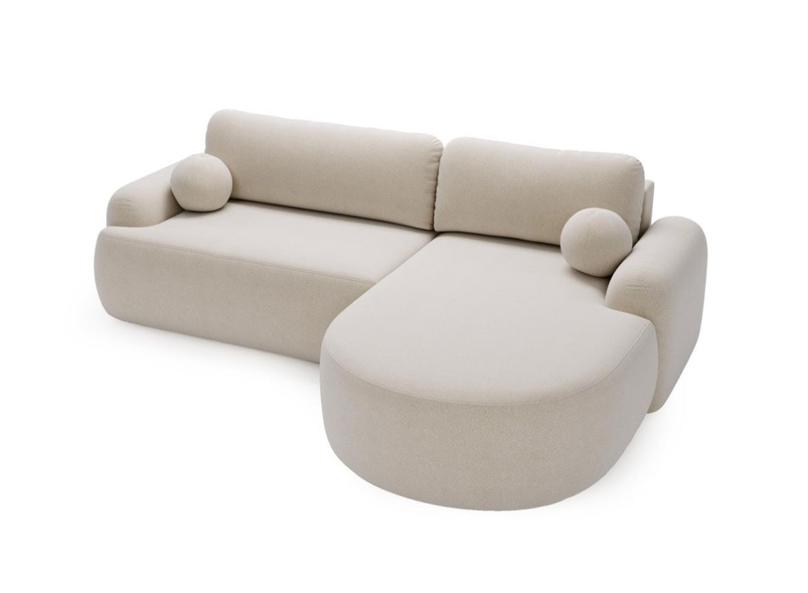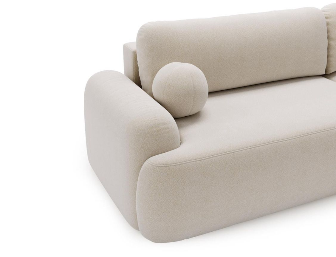 Jego zaokrąglone moduły i subtelne linie sprawiają, że przyciąga wzrok i staje się centralnym punktem wnętrza. Wysokiej jakości materiały i ręczne wykonanie gwarantują trwałość na lata. Szerokie, miękkie siedziska zapewniają komfort, dzięki któremu odpoczynek nabiera nowego znaczenia.